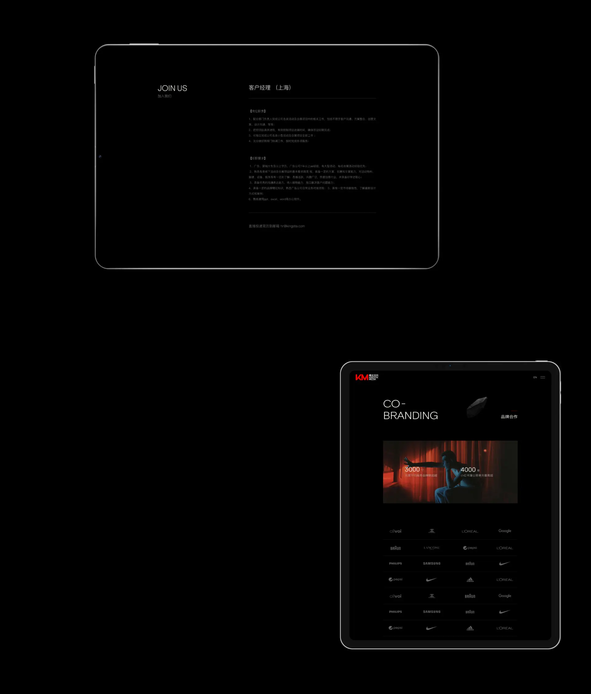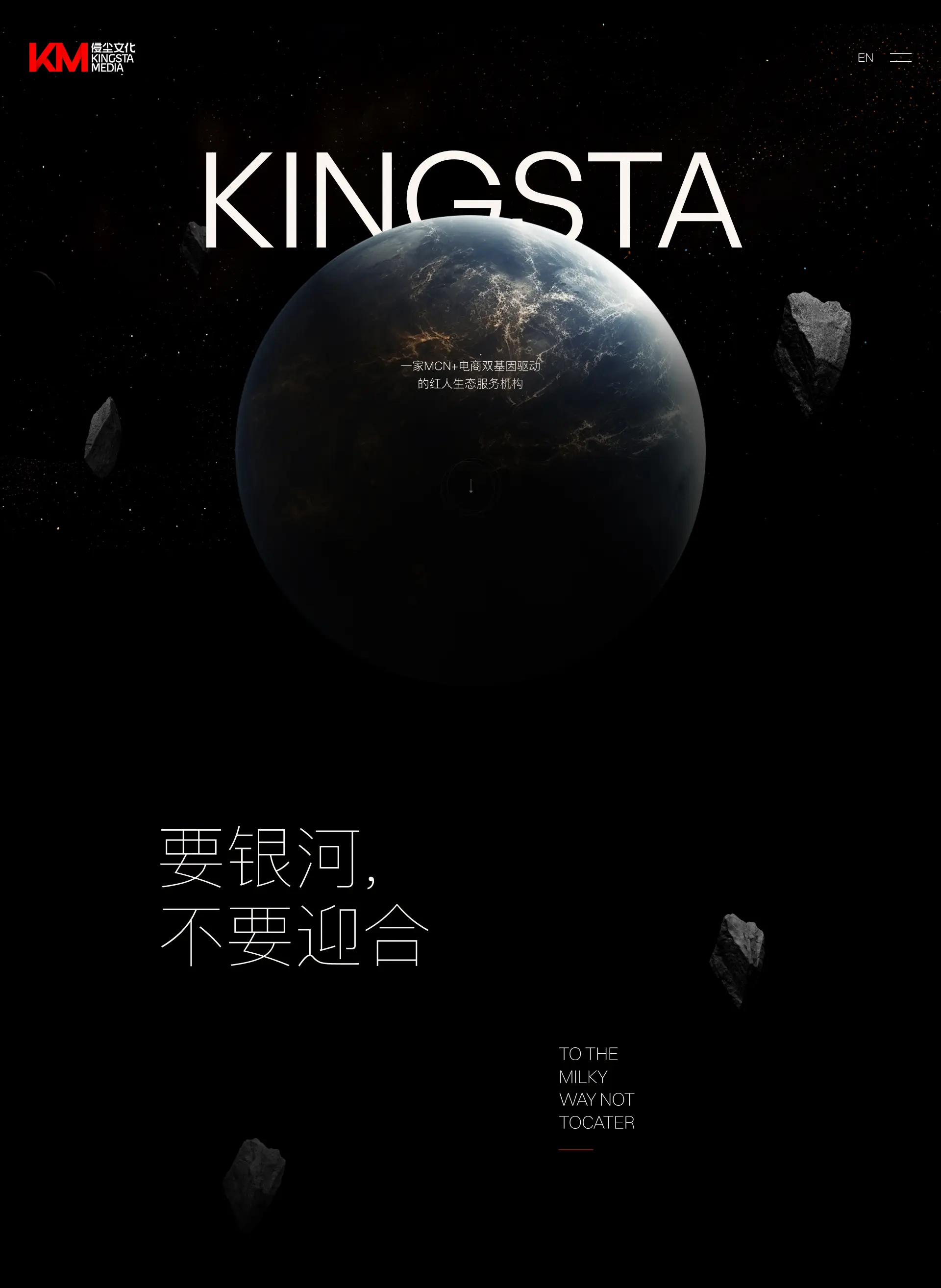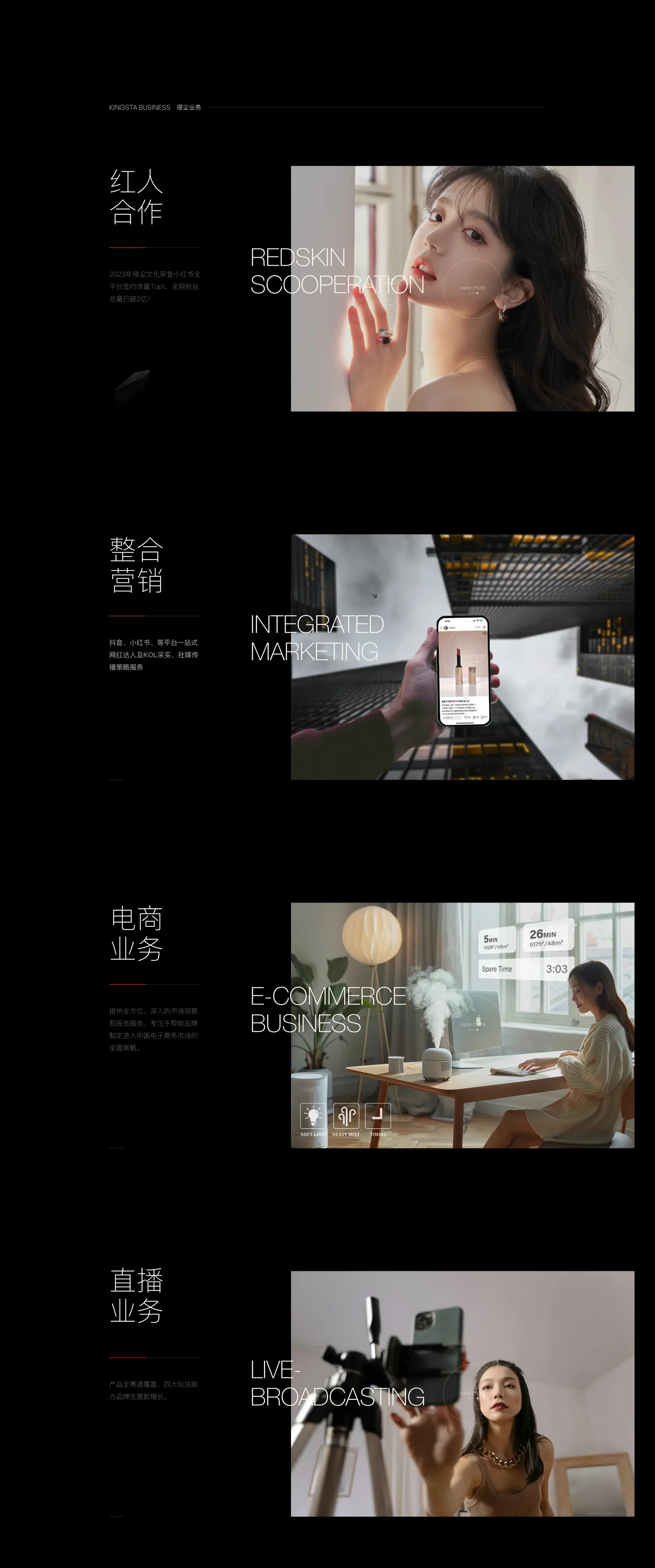 KingSta 侵尘 行业国内顶级MCN机构 项目简介侵尘文化是一家MCN+电商双基因驱动的红人生态整合营销服务机构。总部坐落于宁波,并在杭州、上海等地拓展分部,完善服务网格。是业内第一批,也是迄今为止仍走在行业前列的佼佼者。侵尘文化拥有海量的红人签约资源和达人孵化成功案例、积累大量创新且专业的全案营销策划经验以及高效的项目执行能力。以可持续的发展目标为使命,凭借夯实的技术实力,卓越的独家资源,以领跑者之姿,成就合作伙伴,推动行业进步,服务社会万象。 服务网站设计开发 网址访问 https://www.kingsta.com/